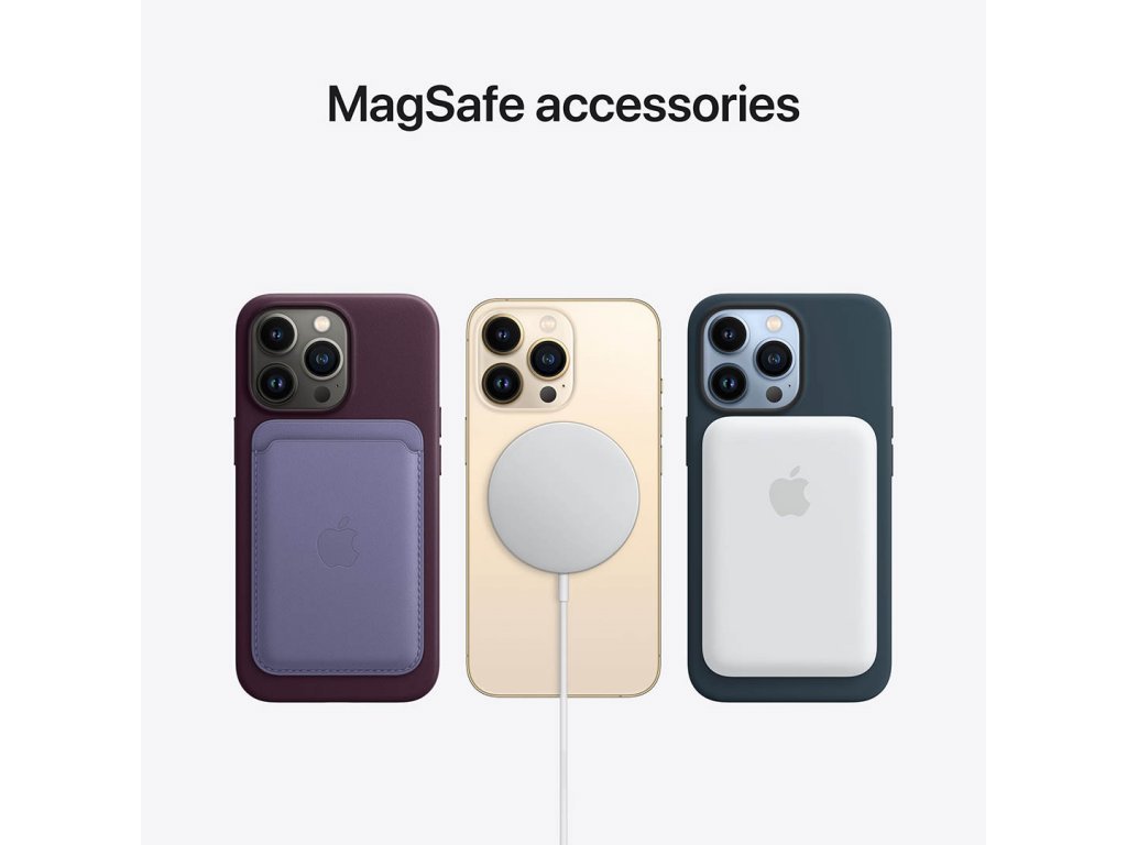 Technologie MagSafe představuje seřazení magnetů na zadní straně telefonu. Ty slouží na nabíjení pomocí magnetu o výkonu 15W ale své využití najdou i při přichytávání krytů nebo Apple peněženek na váš telefon. Samozřejmostí je já podpora rychlého nabíjení až 20 W či bezdrátové nabíjení Qi 7,5W. V konektorové výbavě naleznete Lightning.