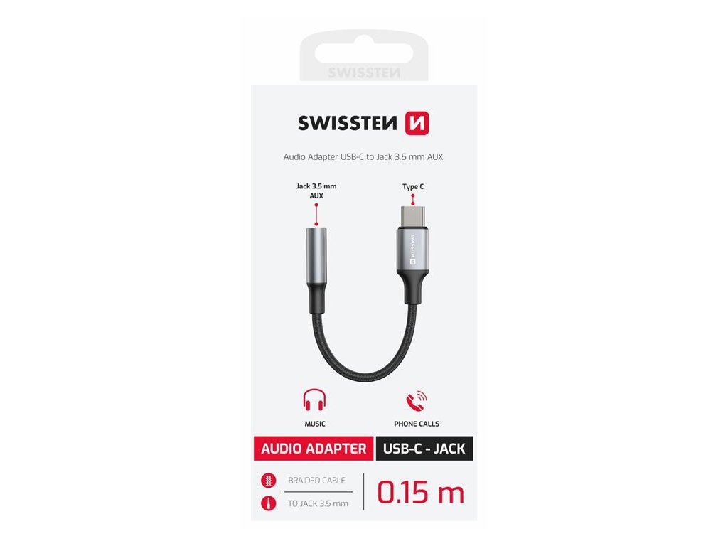 AUDIO ADAPTÉR USB-C (samec) SWISSTEN TEXTILE / 3,5mm AUX 0,15 M ČERNÝ