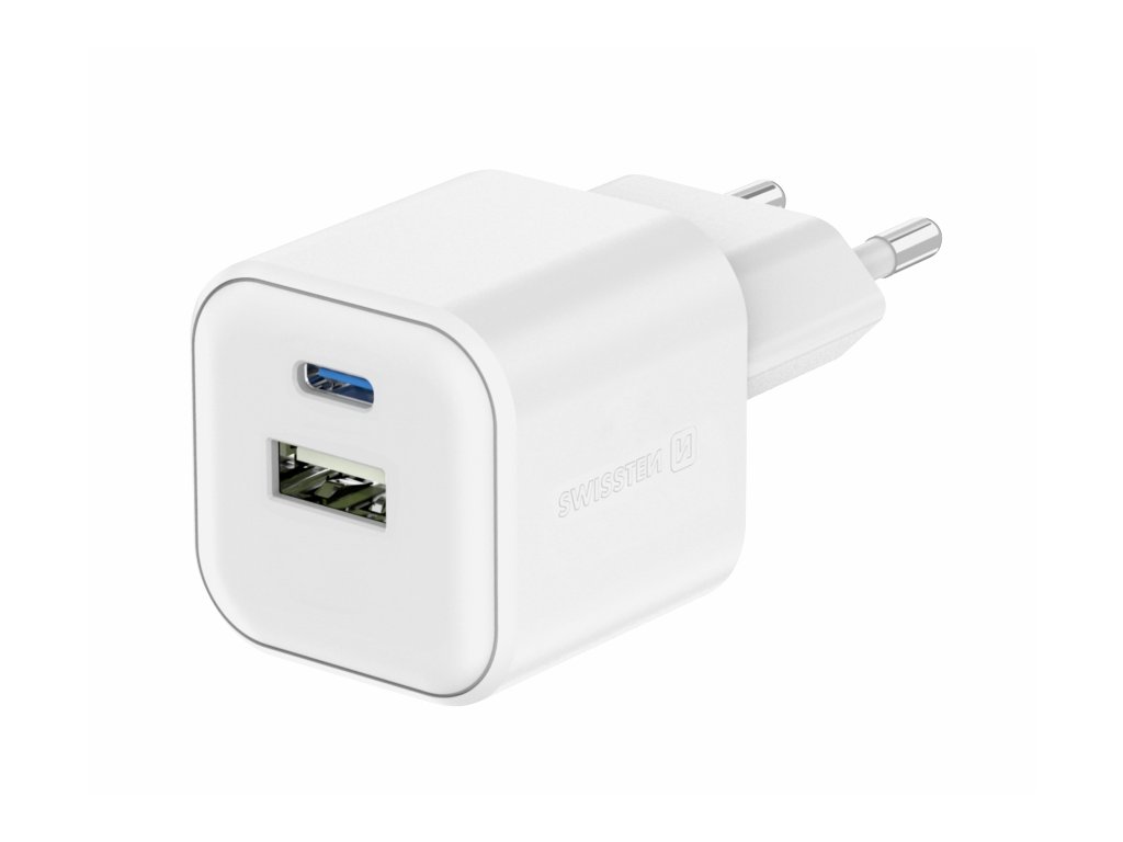 SWISSTEN SÍŤOVÝ ADAPTÉR 12W 1x USB-C + 1x USB-A BÍLÝ