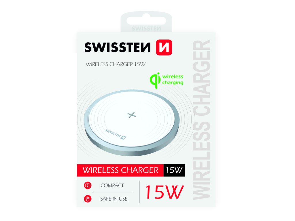 Elegantní bezdrátová nabíječka SWISSTEN s vysokým výstupním výkonem 15W. Baleno v blistru SWISSTEN.