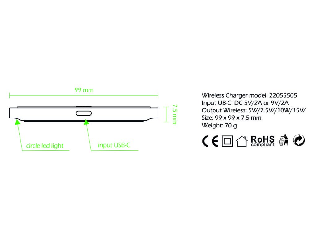 Vysoký výstupní výkon 15W pokryje ztráty bezdrátového nabíjení a zaručí velmi rychlé a šetrné dobití Vašeho smartphonu.