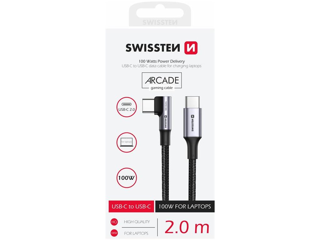 TEXTILNÍ DATOVÝ KABEL SWISSTEN ARCADE USB-C / USB-C 2 M, 5A (100W) PRO NOTEBOOKY ČERNÝ